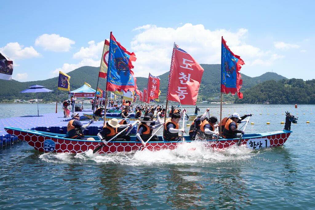 The race features teams rowing traditional turtle ship-shaped boats, paying tribute to Admiral Yi Sun-sin’s legendary naval victory at the Battle of Hansan.