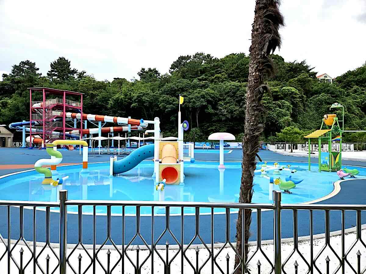 Daedo Paradise Water Park features three main pools — a general pool, a launch pool, and a children’s pool — along with a range of slides, including giant, water, and mini slides.