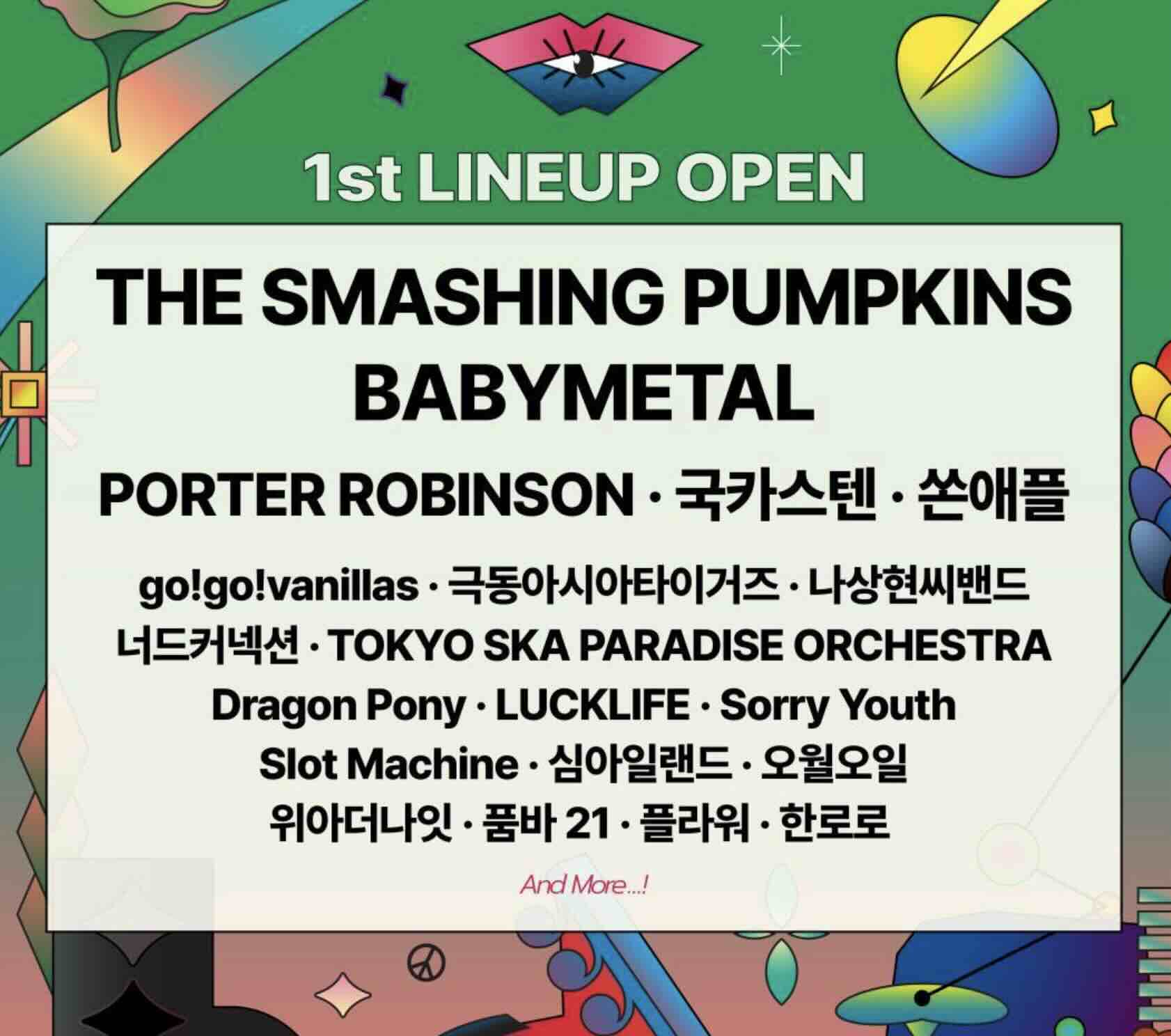 The initial lineup features 20 domestic and international acts, including American alternative rock icons The Smashing Pumpkins, Japanese metal-pop group Babymetal, and acclaimed singer-songwriter Porter Robinson. Other artists include Thailand’s Slot Machine, Tokyo Ska Paradise Orchestra, and Korean rock band Thornapple.