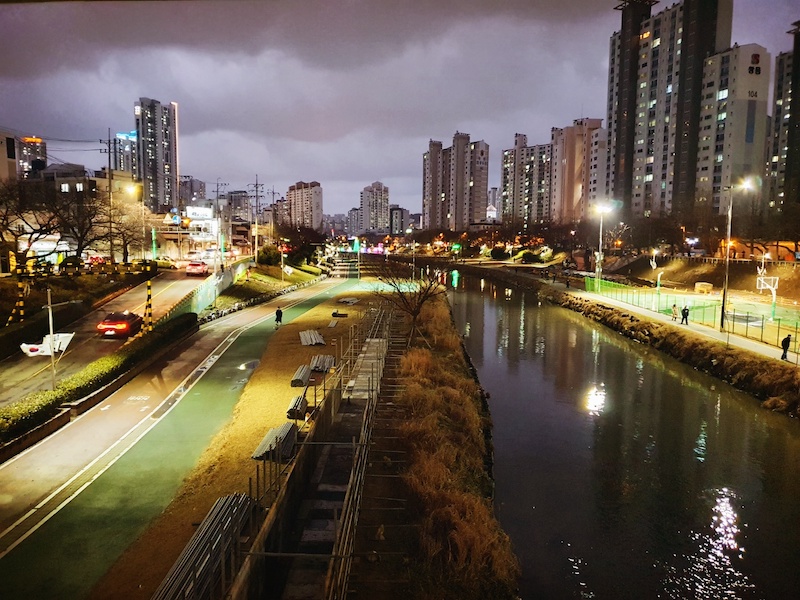 What’s the view like from your living room? Sadly, there isn’t a great view from our living room but there is a small view between the apartments. On the left side, there is Oncheon River Park and on the right side, there is Geumyong Mountain.