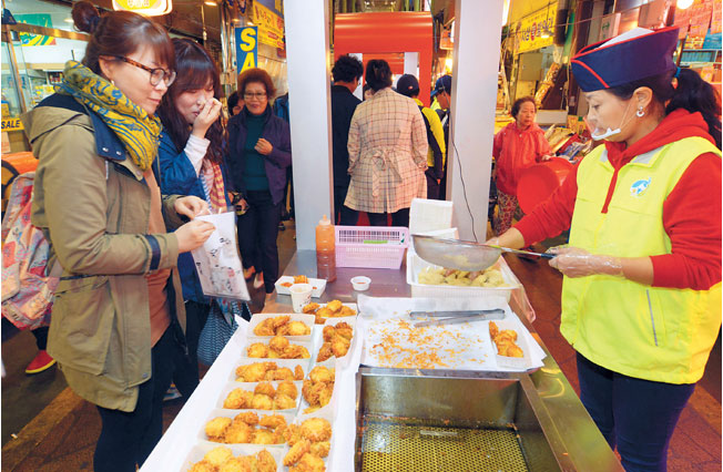 Southeast Asian night markets are already well known, but Bupyeong Night Market offers particular delicacies such as crispy Philippines-style fried sweet potato and banana and Indonesian fried noodles, or mi goring. Both Busan citizens and tourists can’t get enough of them.