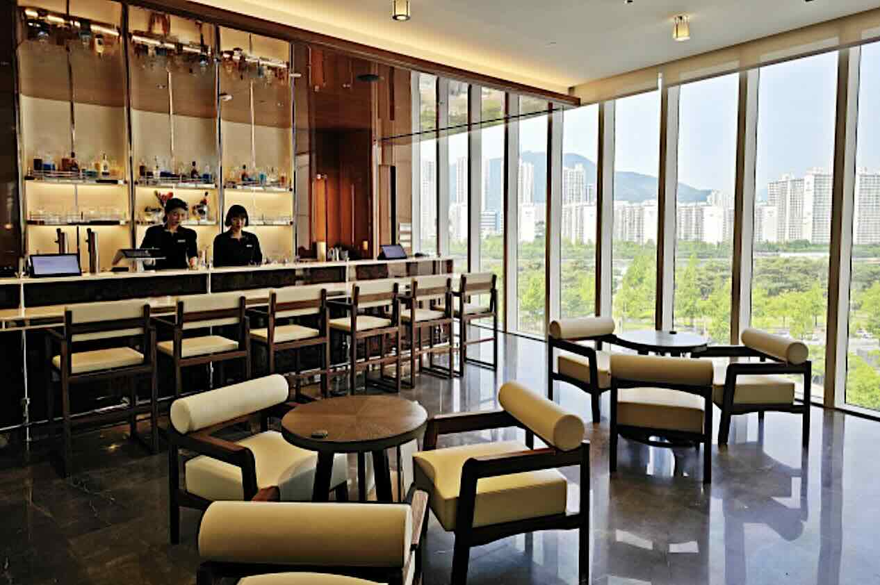 The lounge, styled after a yacht club, offers a view of the Suyeong River and private meeting rooms, along with signature cocktails and special desserts created in collaboration with a Michelin 2-star restaurant.