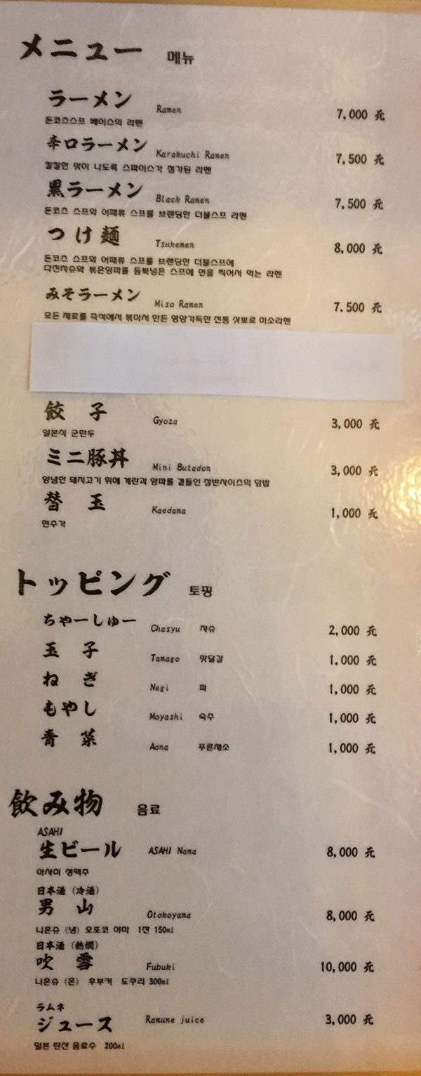 The prices at Menya Sandaime are quite reasonable – a bowl will run you about 8,000 won, and you can add extra meat or veggies for a few thousand more.