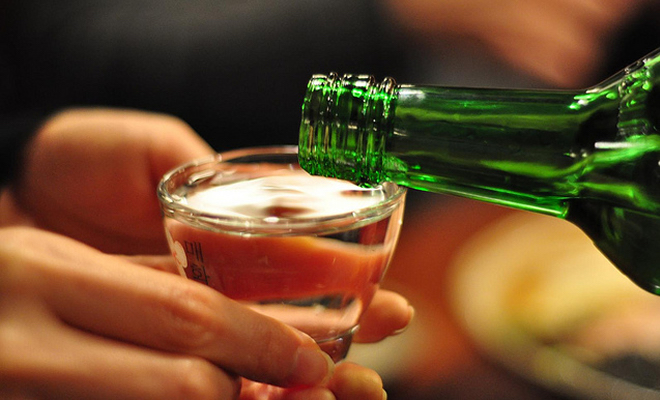 High risk is viewed as a person drinking more than 8.8 shots of the Korean distilled liquor soju in one sitting for males and 5.9 for female.