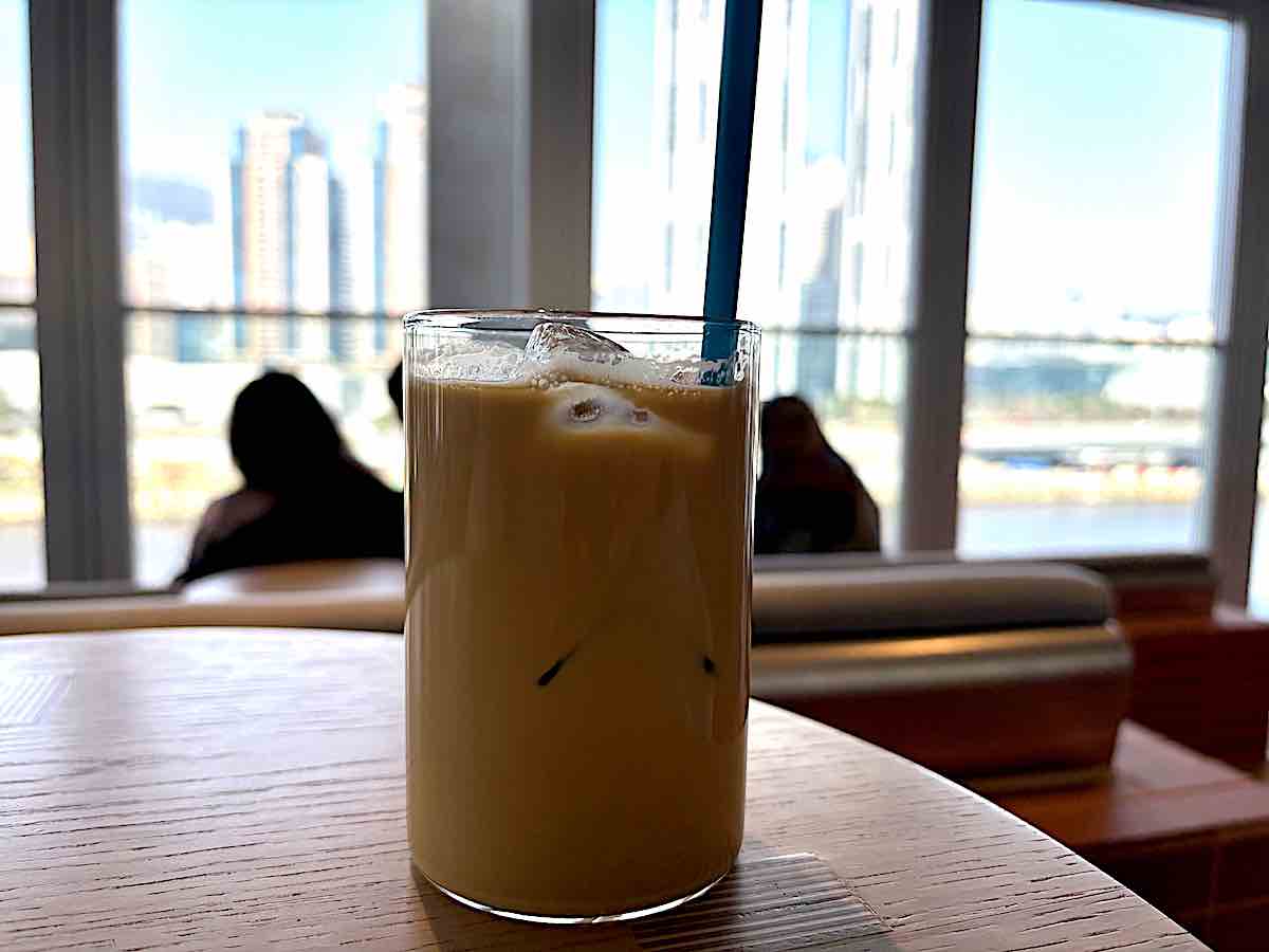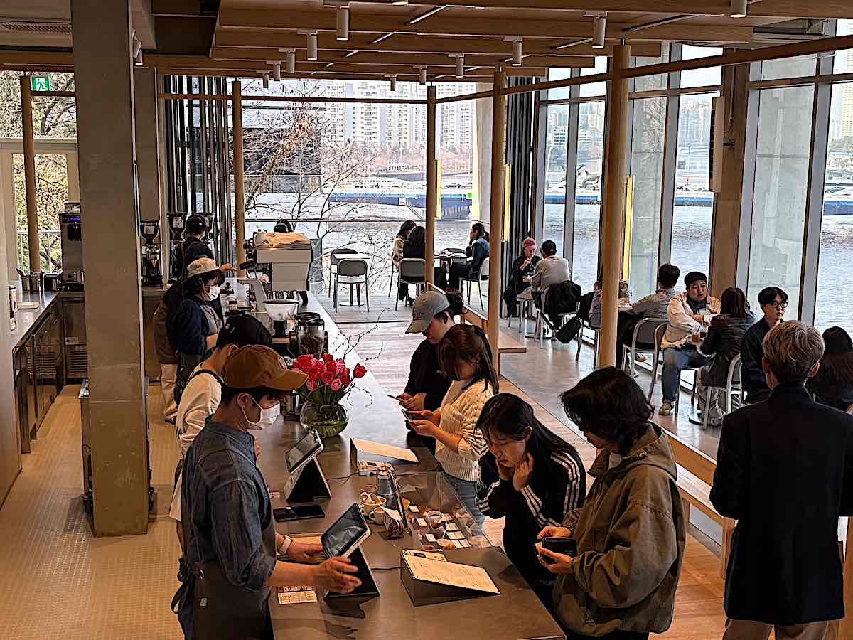 The café also blends local culture, food, and design into a uniquely vibrant coffee experience with exclusive Busan-only items like the embroidered tea towel that are also available.