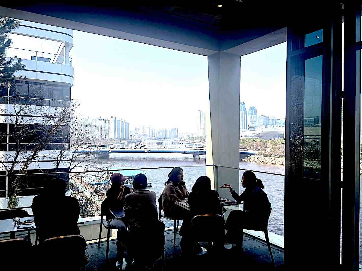 Located on Millak Waterside Road, the café is two stories tall, taking up the fourth floor and the rooftop of the building.